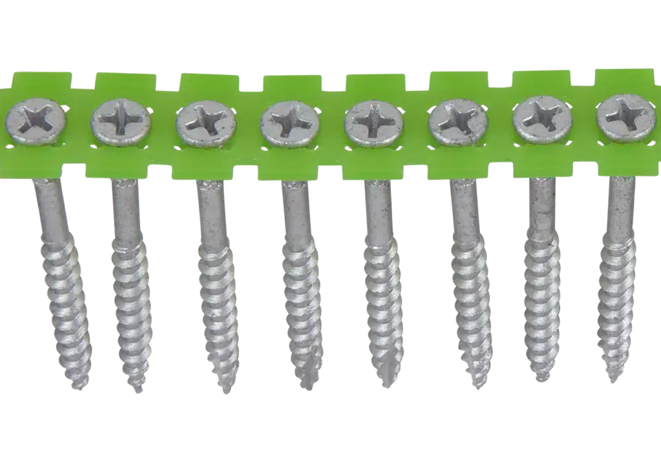 Skruven är tillverkad av härdat stål med CorrSeal ytbehandling, C4. Den är försedd med PH2 bitsfäste.