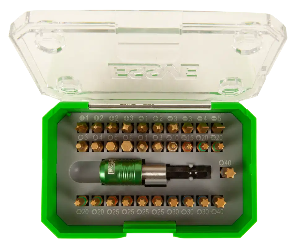 TX-bitsen är färgkodade för att lättare kunna se vilken storlek de har. Förpackningen är stapelbar och kompatibel med ESSBOXsystemet.