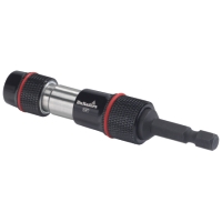 1/4 ledbar magnetisk bitshållare med snabbfäste, utvecklad för professionellt bruk. En kulled tillåter att skruvar kan dras åt i en vinkel upp till 20 grader och används med fördel i trånga utrymmen. Genom att förflytta hylsan kan bitshållaren användas som en standard-bitshållare. Snabbfästet gör det möjligt att sätta i en bits med ett enhandsgrepp utan att behöva dra hylsan bakåt. Den frispinnande svarta hylsan är lätt att hålla i för att stabilisera bitset medan man skruvar.