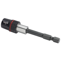 . 1/4 magnetisk torsion bitshållare med snabbfäste, utvecklad för professionellt bruk. Bitshållaren har en optimerad torsionzon som på ett elastiskt sätt tar upp de höga vridmomenten för att inte skada bitset, vilket förlänger bitshållarens livslängd. Snabbfästet gör det möjligt att sätta i en bits med ett enhandsgrepp utan att behöva dra hylsan bakåt. Den frispinnande svarta hylsan är lätt att hålla i för att stabilisera bitset medan man skruvar.