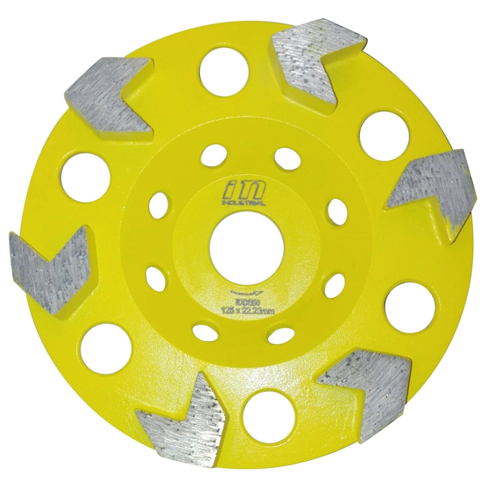 Industrial diamantslipskål 556 ARROW är avsedd för grov avverkning på 1-3 mm av hårda material (ej sten) som ex. betong, hård puts, betonggrader, hårt spackel, håldäck. Passar för både torr- och våtslipning och är avsedd för både vinkelslipar och de flesta betongslipar. Ytterdiameter: 125 mm. Håldiameter: 22,23 mm. Segmentshöjd: 10 mm. Totalhöjd: 26 mm. SB-packad.