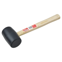 Gummiklubba 16 oz med träskaft och halva huvudet svart och det andra vit.