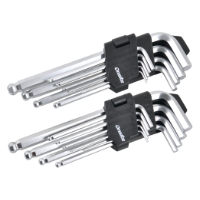 Insexnyckelsats med kula i 18-delar. Tillverkade av kromvanadiumstål. Ergonomiskt utformat handtag med inlägg av gummi.