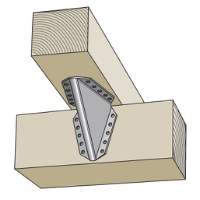Knagge KB är anpassad för användning i grövre virkesdimensioner. Används vid förbindning av ås till balk, där åsen utsätts för stora vältande och lyftande krafter. Knaggen är lämpad för takkonstruktioner med brant lutning. För fastsättning används ankarspik 4,0 eller ankarskruv 4,8. Material: Varmförzinkad stålplåt S250GD+z275. Spikhål: Ø 5,0 mm