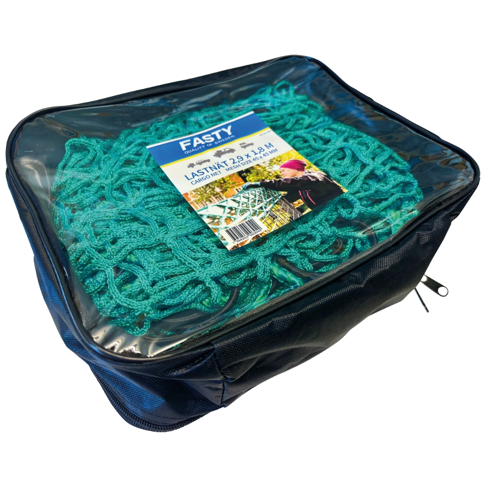 Lastnät för släpvagn, släpkärra, takräcke etc. Maskstorlek 4,5 x 4,5 cm. Tråd 3 mm. Levereras i smidig förvaringsväska.