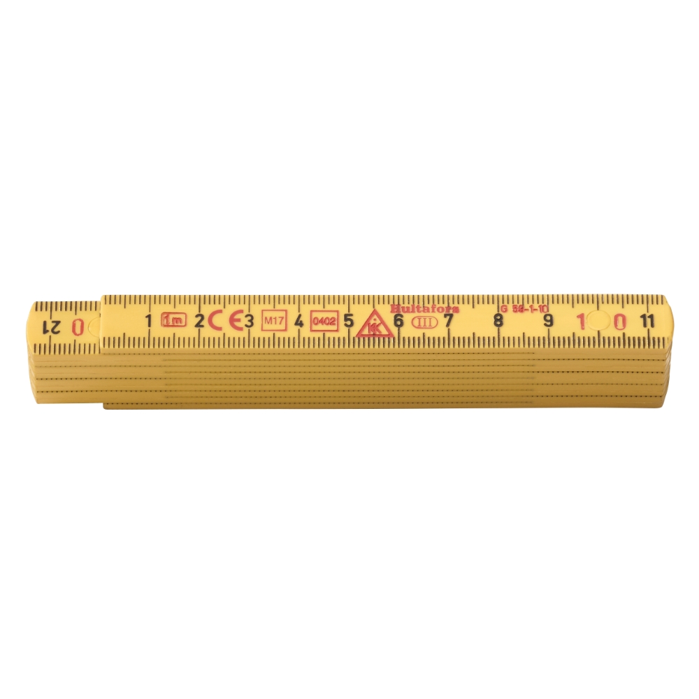 Tillverkade av glasfiberförstärkt polyamid. Vattenavvisande och tål de vanligaste lösningsmedlen. Nollpunkt i båda ändar. Typ 59: Metrisk gradering på båda sidor. Röda decimalsiffror. Typ 61: Engelsk tum i överkant och metrisk gradering i underkant på båda sidor.