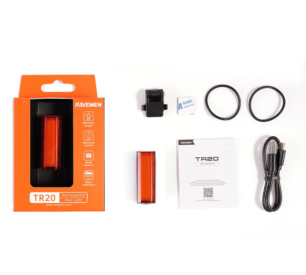 Ravemen TR20 Baklampa Med bara 20 gram och 20 LED-lumen är Ravemen TR20 en superkompakt, lätt men ändå tålig baklampa för din cykel. Med snabbkopplingsfäste som gör lampan lätt att montera är den bekväm att använda när du pendlar eller landsvägscyklar. Baklampan går att montera på sadelstolpen eller på hjälmen.
