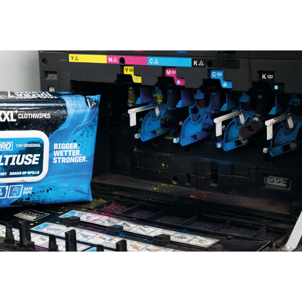 UltraGrime Pro Multiuse XXL är en skonsam men kraftfull rengöringsduk som snabbt och effektivt tar bort smuts, fett, olja, färg, lim, silikon och mycket mer – helt utan vatten. Perfekt för både händer, verktyg och ytor.