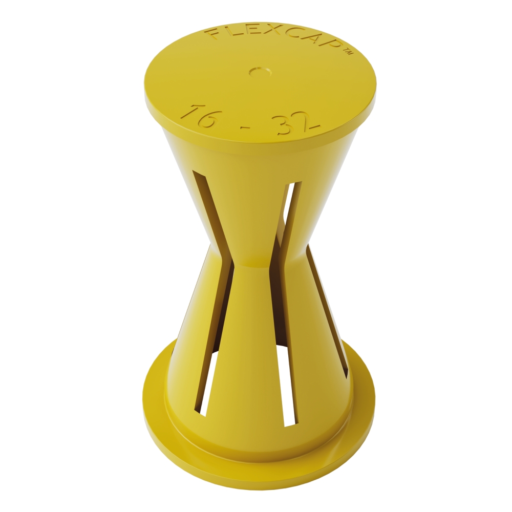 Flexcap är skyddsknoppen som sticker ut. Med sin färg fångar Flexcap blicken på arbetsplatsen, det som en skyddsknopp ska göra. Den ska synas för att varna för uppstickande armering eller bara den vassa armeringen under knoppen.