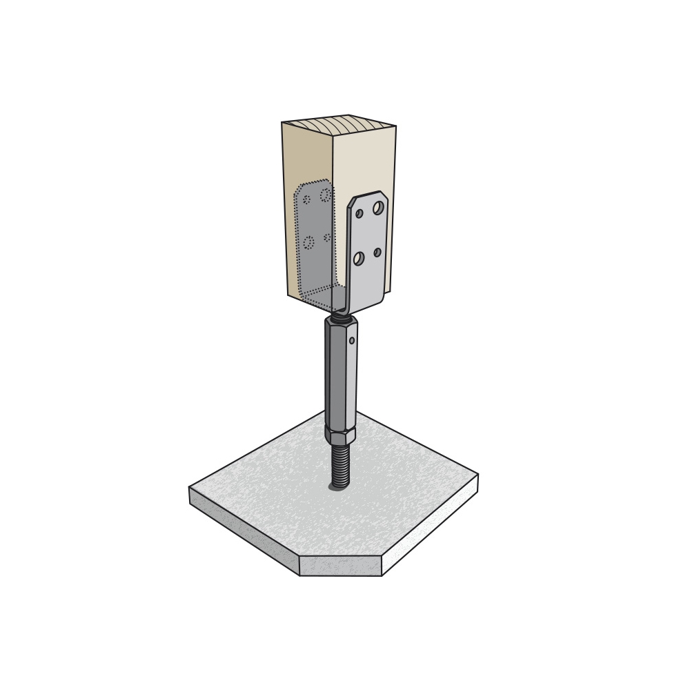Stolphållare CSAH är justerbar i höjd med hjälp av en vänster-/högergängad långmutter. Används för ingjutning i betong vid infästning av stolpar, till exempelvis staket, pergola och carport. För icke bärande konstruktioner. Dimensionen på gängstång är M16. För fastsättning används ankarspik 4,0 eller ankarskruv 4,8. Till bulthålen används M8, M10 bultar.