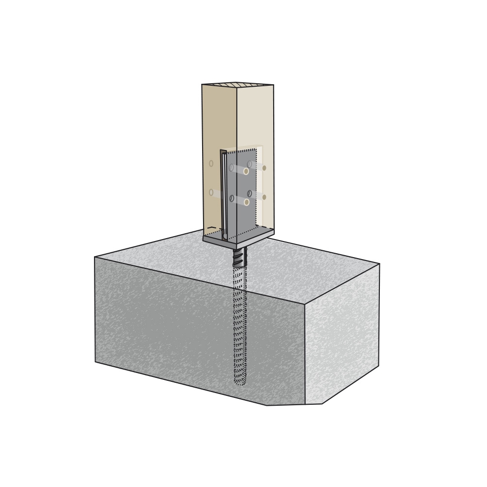 Stolphållare CSPI används för ingjutning i betong vid infästning av trästolpar. CSPI är användbar när monteringen skall vara osynlig. Avståndet från den vågräta plattan till betongöverkanten får ej överstiga 50 mm. Armeringsjärnets längd 250 mm. För fastsättning används varmförzinkade M8-dorn med längd som motsvarar stolpen eller regelns bredd.