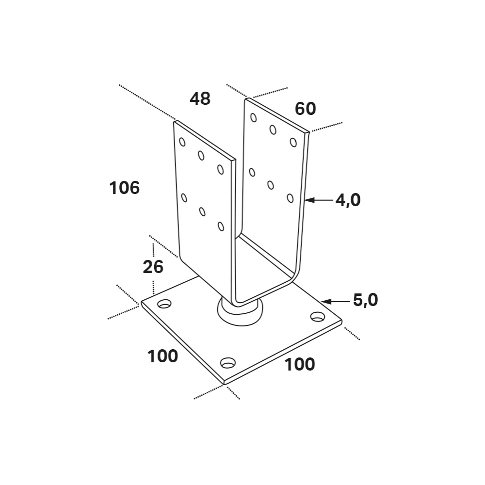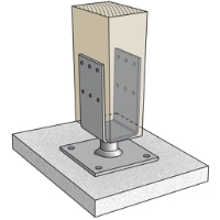 Stolphållare CSUF används för fastsättning i betong vid montering av trästolpar. För icke bärande konstruktioner. För fastsättning används ankarspik 4,0, ankarskruv 4,8 och M8-bult.