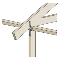 Takåsfäste RRFRU är förstärkt och används vid takkonstruktioner och korsande balkar, i huvudsak vid förankring av takåsar till primärbalkar. Takåsfästet är särskilt användbart i konstruktioner som förses med inklädnad på den bärande stommen eller där det saknar betydelse om beslaget är synligt. RRFRU kan användas som såväl höger- som vänsterbeslag. För fastsättning används ankarspik 4,0 eller ankarskruv 4,8. Material: Varmförzinkad stålplåt Spikhål: Ø 5,0 mm