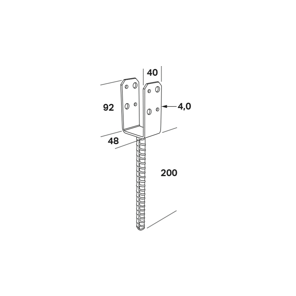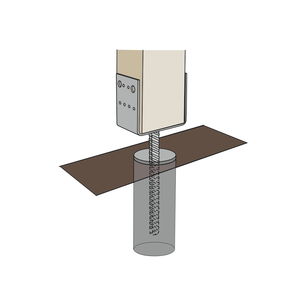 Stolphållare PSU FAST CC. Stolphållare PSU används för ingjutning i betong vid infästning av stolpar, till exempelvis staket, pergola och carport. Avståndet från den vågräta plattan till betongöverkanten får ej överstiga 50 mm. Armeringsjärnets längd är 200 mm, Ø 16. För fastsättning används ankarspik 4,0 eller ankarskruv 4,8. Till bulthålen används M8, M10 bultar. Material: 4 mm stålplåt, varmförzinkad efter svetsning Spikhål: Ø 5,0 mm Bulthål: Ø 9,0 mm, Ø 11,0 mm